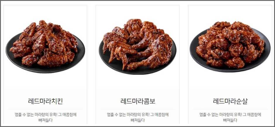 레드메뉴는 마라향이 들어간 매콤한 맛입니다.