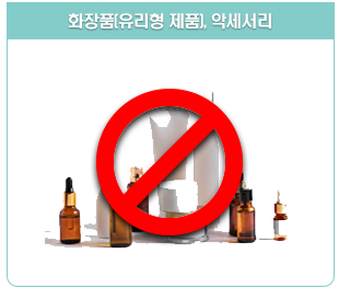 | 유리형 화장품, 악세사리 | 라이트펜 | 칼,가위등 날카로운 물건 |
