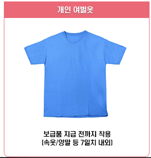 | 개인여벌옷 7일치내외 | 책 3권[만화책, 잡지책 불가] | 기타 :립밥,이어플러그,연고,파스,밴드,면봉,깔창, 관절보호대등 |