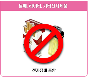 | 물티슈 | 담배,라이터, 전자담배 | 취식물, 간식등 |