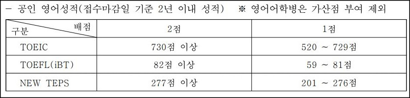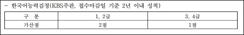 - 한국어, 한국사, 공인영어성적의 자격점수가 있다면 가산점이 부여됩니다.