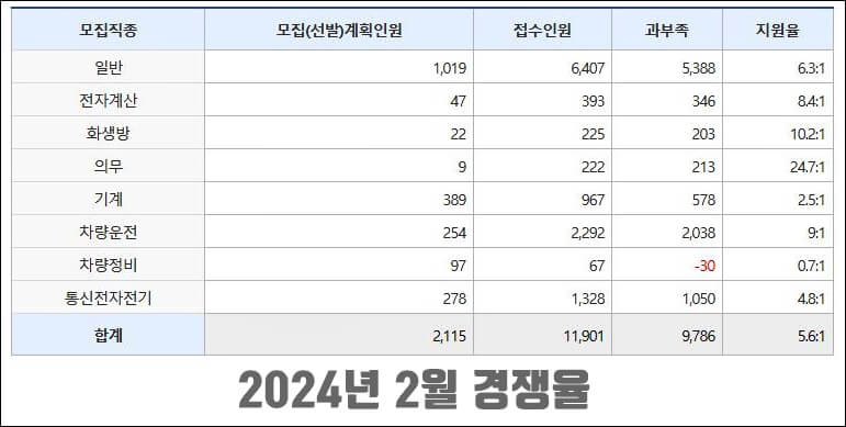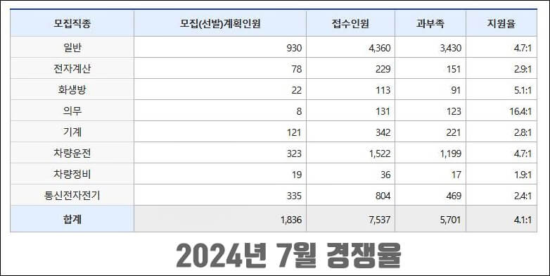 ▣ 2024년 상반기 모집인원[커트라인]