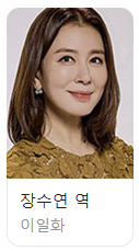 - 장수연 역의 이일화는 진단의 형수, 선영의 여고 동창 친구로 기품있고 온화한 성격의 부잣집 사모님, 필승의 생모