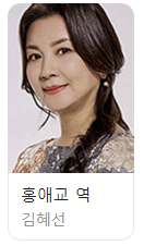 홍애교 : 최고의 빌런(악역), 진단의 어머니, 수연의 친구이지만 죽은 공진택 부친의 내연녀였습니다. 수연과는 관계가 복잡해지는데요. 시어머니가 될 뻔 했습니다.