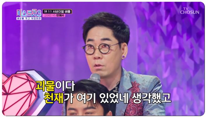 김연우 심사위원을 한마디로 '괴물이다' 천재라고 했습니다. 감동의 끝판왕이었다고 심사평이 아닌 감상평을 썼네요.