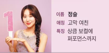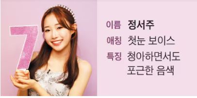 | 정슬 | 김소연 | 오유진 | 미스김 | 배아현 | 나영 | 정서주 |