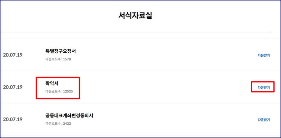서식자료실->확약서를 다운로드하세요.(2페이지에 있습니다)