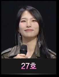 27호 가수는 이미 검증된 가수인데요. 2019년 보컬플레이 캠퍼스 뮤직 올림피아드 우승을 한 경력이 있고 여러 음악경연 프로에 나왔던 가수입니다. 임재범 심사위원이 그만 나오고 집에 가도 된다고 할 정도였는데요.