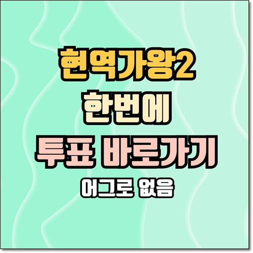 현역가왕2의 투표바로가기와 투표전략에 대해 말씀드립니다. 원픽, 나만의 가수가 있으시다면 아래 투표 바로가기 버튼을 눌러 응원하는 가수에게 투표해 주세요. 한 번에 바로 갑니다. 두 번 세 번 클릭 없어요.
