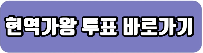 응원하는 가수가 있다면 음원과 유튜브영상도 자주 시청해 주셔야 합니다. 아래 대국민응원투표는 당연히 해 주셔야 하고요. 팬덤이 많은 가수가 유리한 방식이라 상대적으로 인기가 적은 가수들이 조금 불리한 상황이라 이 점은 조금 안타깝습니다. 실력만으로 선발을 하면 좋을 듯한데요. 이번 현역가왕은 한일전 대표선수를 선발하는 것이라~~