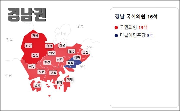 ▣ 22대 국회의원: 경남권 국회의원 의석수